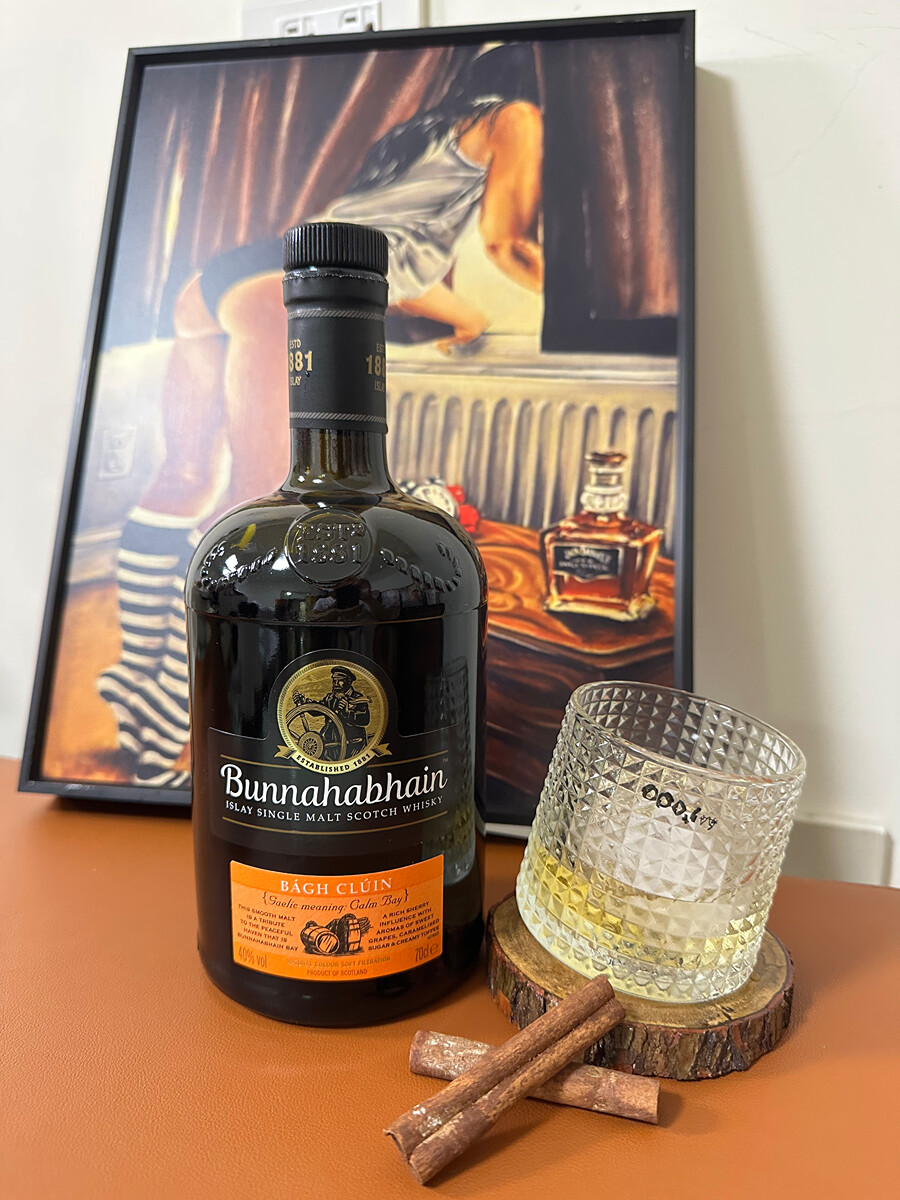 布納哈本酒廠始建於1881年,艾雷島的東北端。它於1882年由Islay Distillery Co.合併,然後與Wm合併。Grant&Co.成立高地蒸餾廠。Burn Stewart Distillers Ltd.於2003年與Black Bottle一起收購了布納哈本和該釀酒廠。此款酒命名源自蓋爾語,其英譯為Calm Bay(寧靜的海灣),雙關語就是"乾杯"